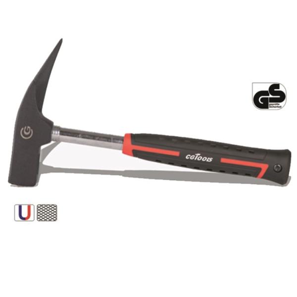 Roofers hammer is the perfect hammer for the roofing trade. The German pattern hammer (latthammer) features a bradawl claw for making holes in roof tiles and for easy removal of old nails. This roofing hammer is solid forged in one piece of steel to offer maximum strength and increased durability. The hammers recessed head is magnetised to help start nails easily. Soft handle with shock aborsbing design for comfortable and safe use.